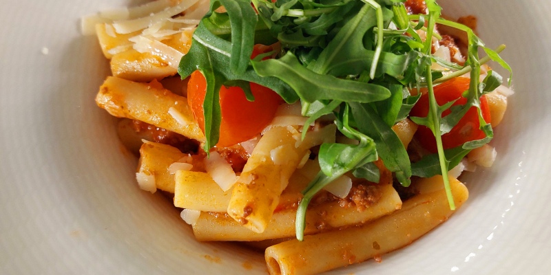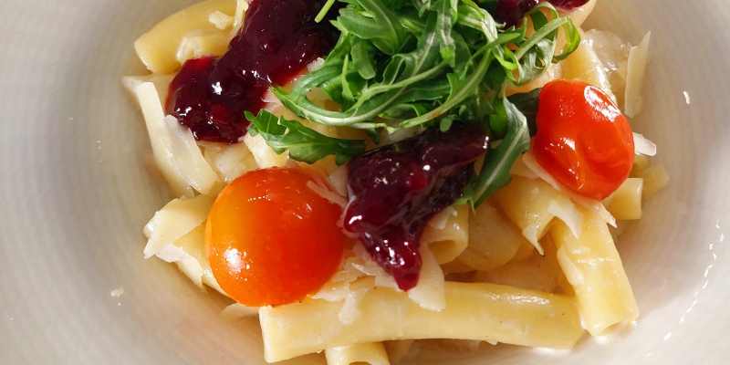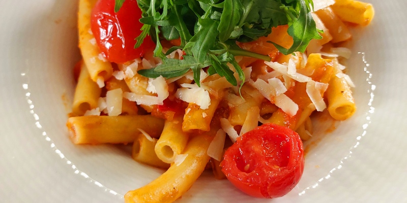 "PASTA ALLA PEPERONATA" Bell pepper | Tomato | Garlic | Rosemary | Grana Padano | Rocket incl. daily salad OR dessert13.1- vegetarian