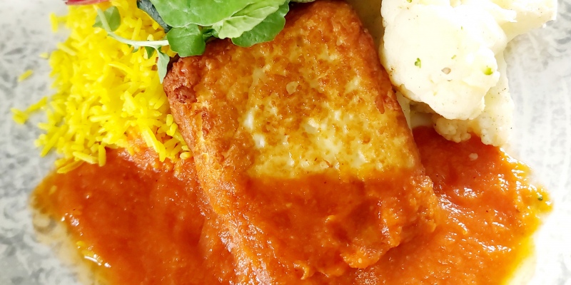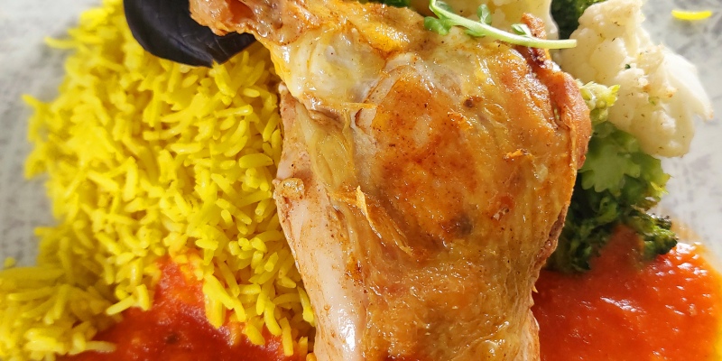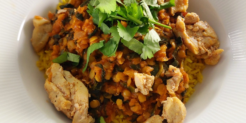 "CHICKEN DAL PALAK " Chicken strips | Spinach | Tomato | Red lentils | Tumeric | Garam Masala | Basmati rice incl. daily salad OR dessert13.1
